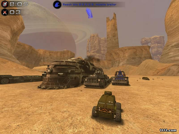 地图是在几辆巨型运输车上进行的!运输车在高速移动,背景是动态的沙漠,玩家掉下去就挂了!