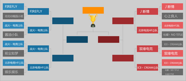 电信四强分别是:Firefly、战火丶电竞②队、战火丶电竞①队、北京电竞HF①队